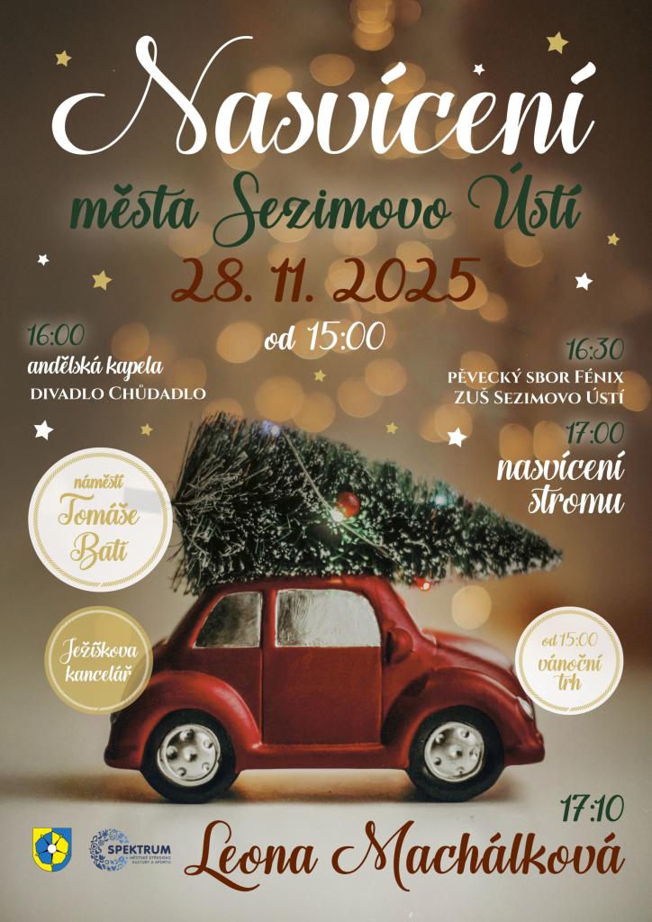 Tradiční vánoční trh s programem pro celou rodinu a slavnostní rozsvícení vánočního stromu v 17:00, tentokrát s Leonou Machálkovou.