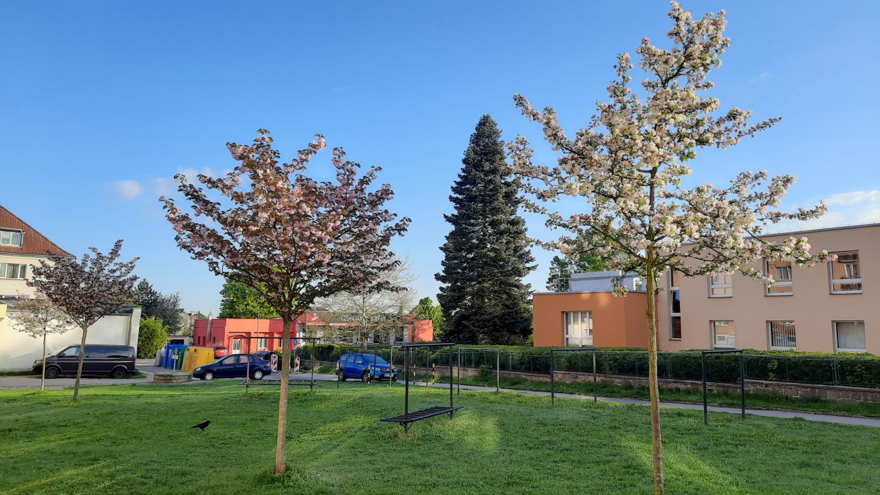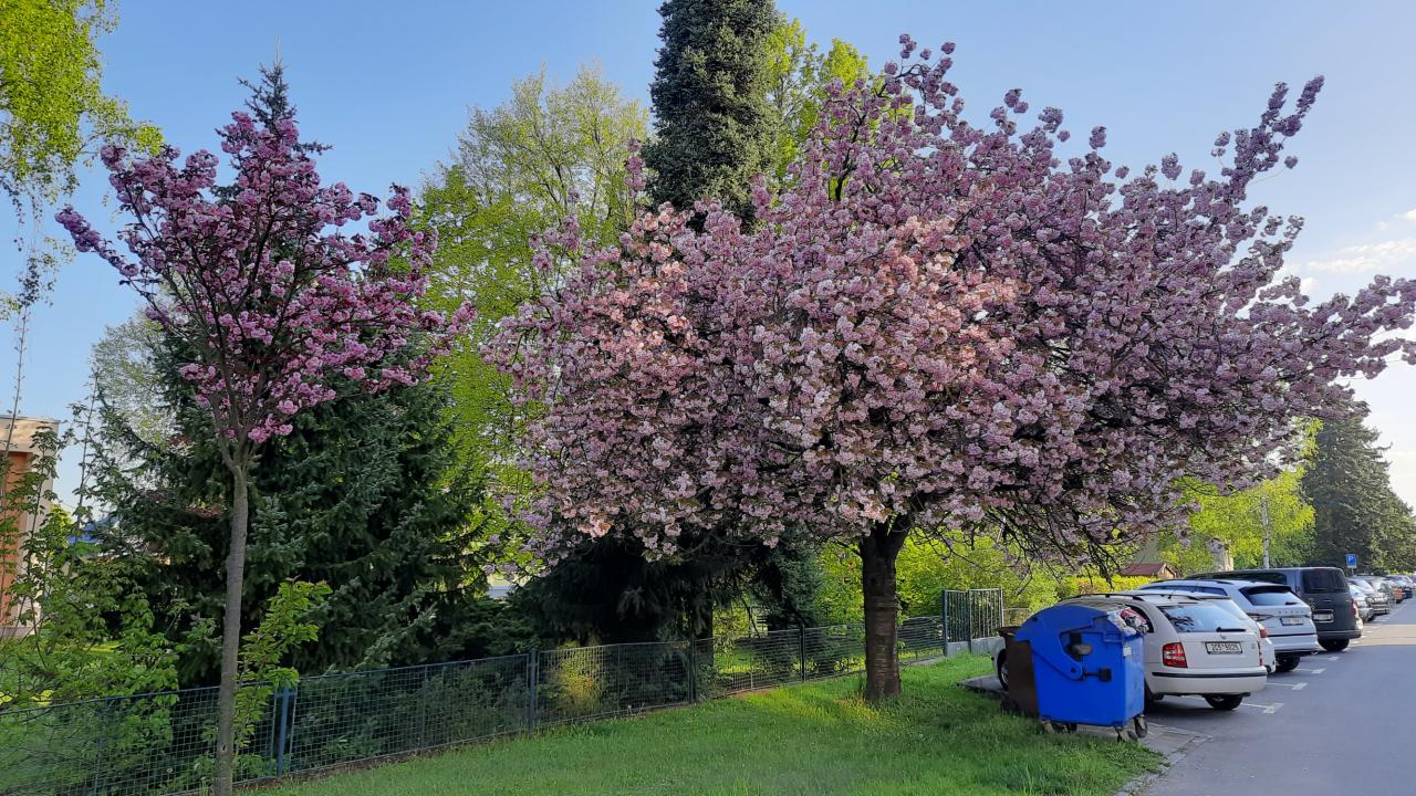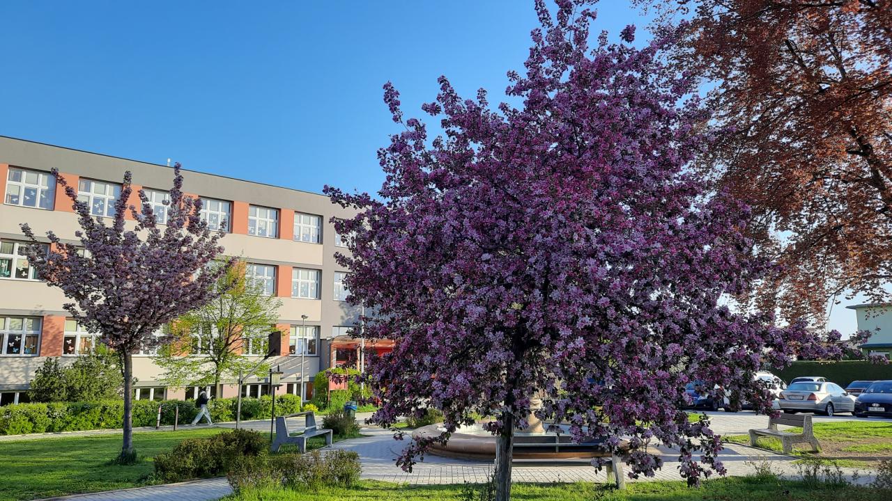 Okrasné jabloně před 2. ZŠ
