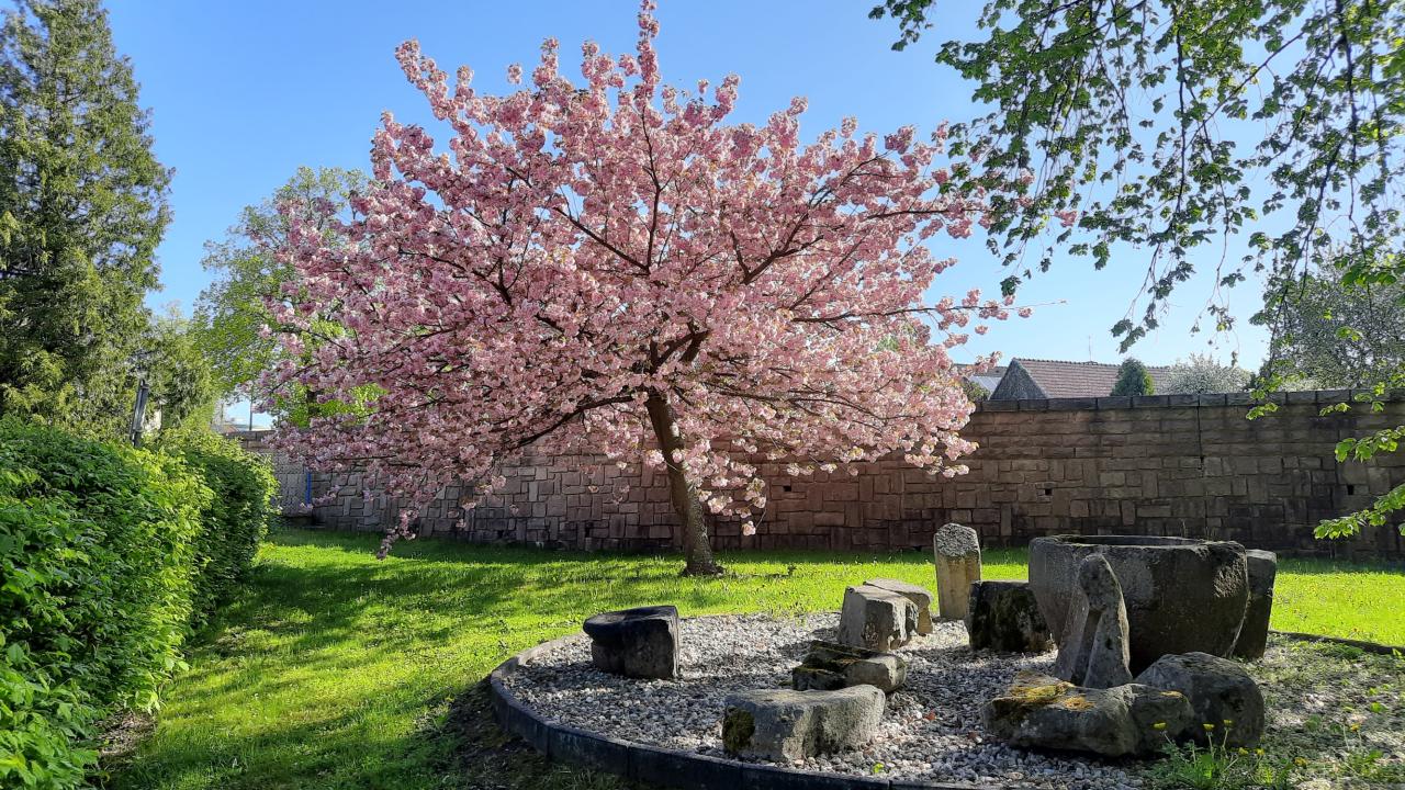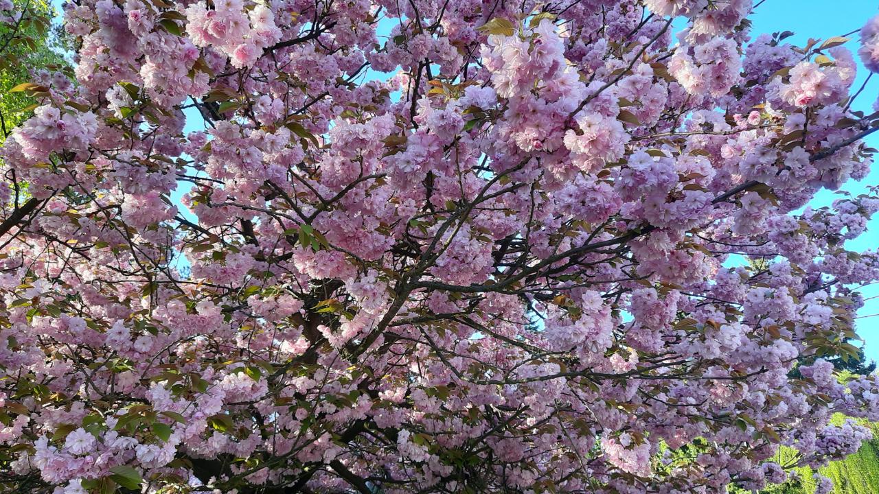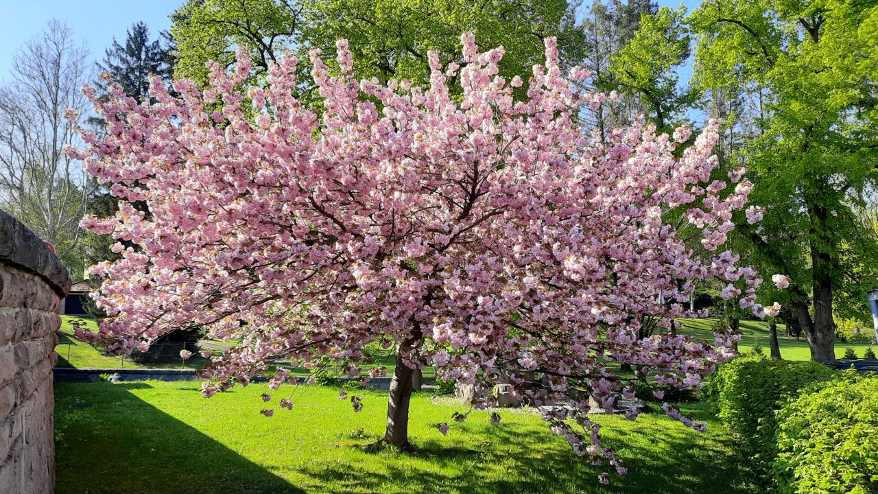 Zachycení v dubnu kvetoucích stromů a cibulovin ve městě.