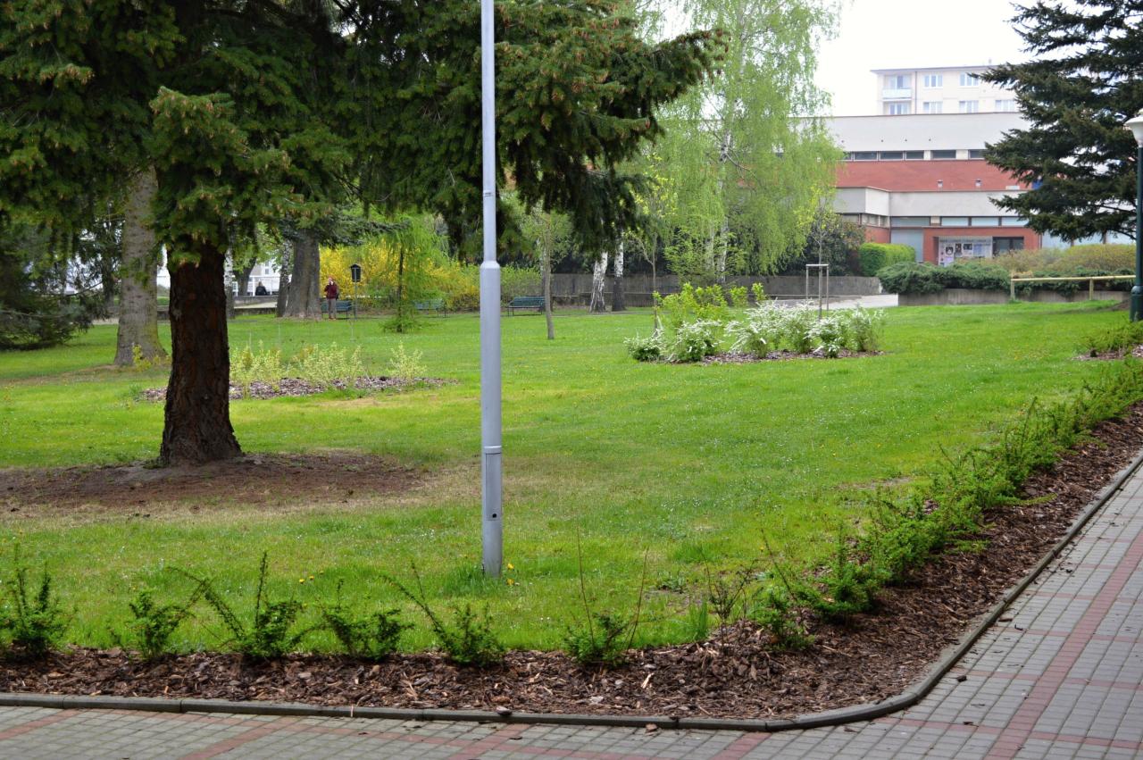 • keřové výsadby před vchody domů čp. 677 v ul. Svépomoc, domu čp. 653 v ulici K Hájence, domu čp. 627 na Školním náměstí a na rohu parku v Kollárově ulici, kolem lavičky za prodejnou JAMA